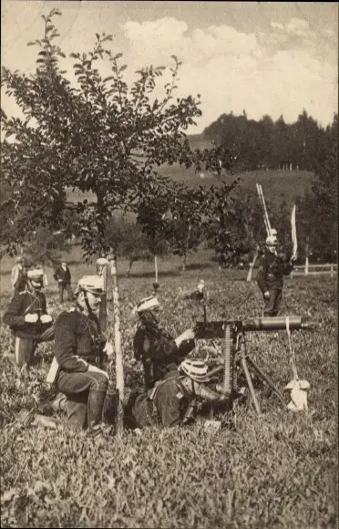 Ak Schweizer Soldaten, Feuernde Mitrailleur, Maschinengewehr