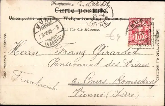 Zustand, siehe Scan, gelaufen, 1904 - ca 14 cm X 9 cm