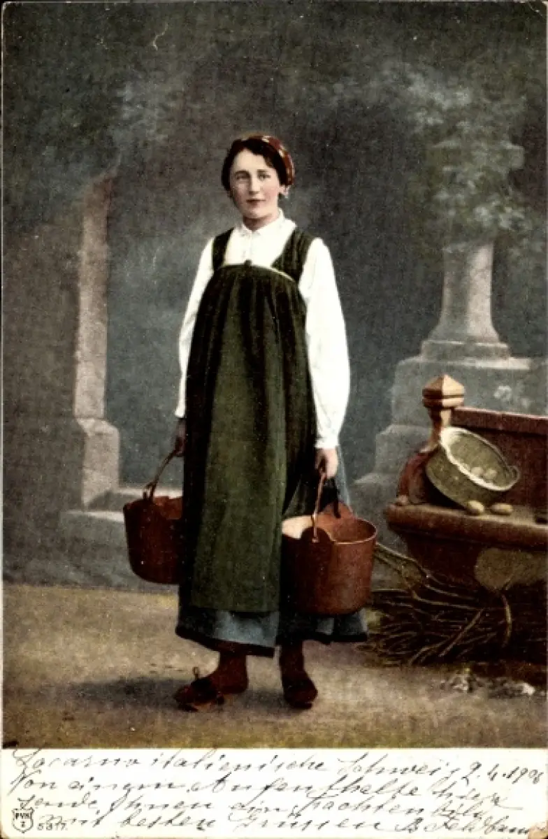Ak Schweizerische Tracht, Frau mit zwei Eimern, Porträt