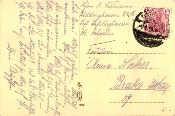 Zustand, siehe Scan, gelaufen, 1919 - ca 14 cm X 9 cm