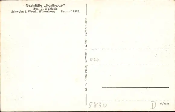 Ak Schwelm in Westfalen, Winterberg, Gasthof Postheide
