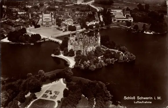 Ak Schwerin Mecklenburg, Schloss, Fliegeraufnahme