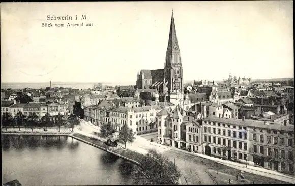 Ak Schwerin in Mecklenburg, Blick vom Arsenal aus