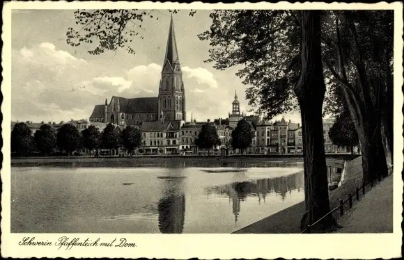 Ak Schwerin in Mecklenburg, Pfaffenteich mit Dom
