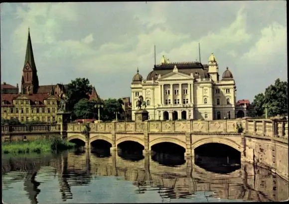 Ak Schwerin in Mecklenburg, Staatstheater, Dom, Brücke