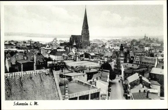 Ak Schwerin in Mecklenburg, Stadtpanorama, Kirche