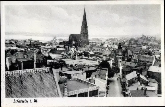 Ak Schwerin in Mecklenburg Vorpommern, Totalansicht, Kirche