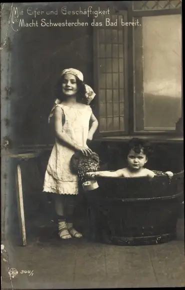 Ak Schwesterchen mach das Bad bereit, Kind im Waschzuber