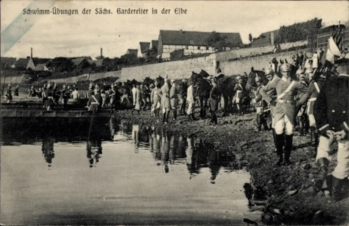 Ak Schwimm-Übungen der Sächsischen Gardereiter in der Elbe