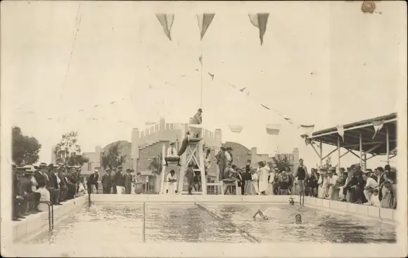 Ansichtskarte, Postkarte, Badeanstalt, Schwimmbad, Freibad, Strandbad, Volksbad