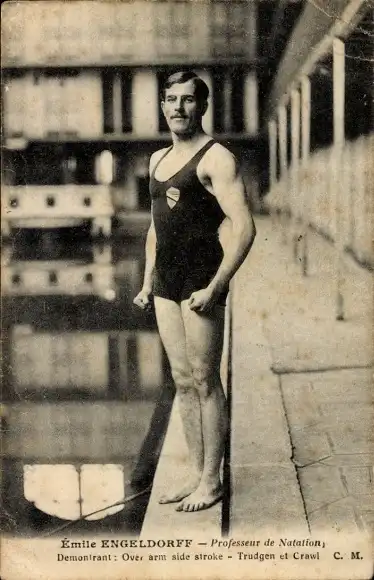 Ak Schwimmer Emile Engeldorff, Portrait