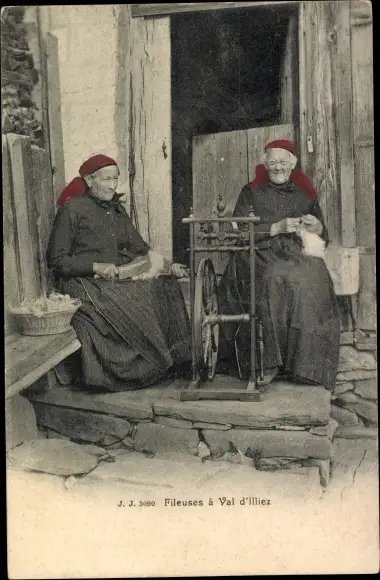 Ak Schwyz Stadt Schweiz, Fileuses à Val d'Illiez