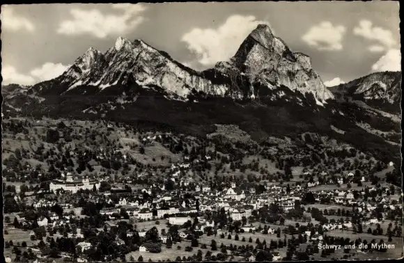 Ak Schwyz Stadt Schweiz, Gesamtansicht mit den Mythen