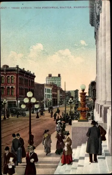 Ak Seattle Washington USA, Third Avenue vom Postamt