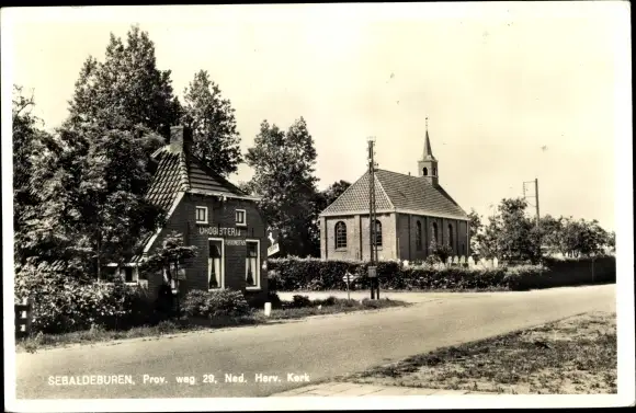 Ak Sebaldeburen Grootegast Groningen, Prov. weg 29, Ned. Herv. Kerk