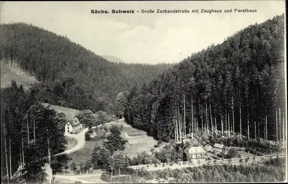 Ak Sebnitz Sächsische Schweiz, Große Zschandstraße mit Zeughaus und Forsthaus, Panorama