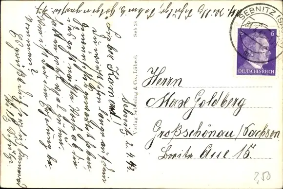Zustand, siehe Scan, gelaufen, 1943 - ca 14 cm X 9 cm