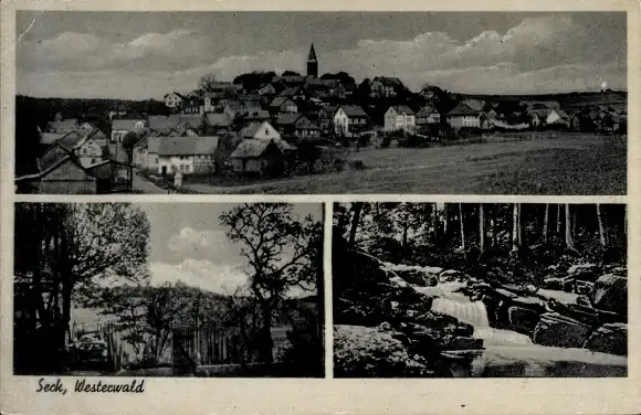 Ak Seck im Westerwald, Gesamtansicht, Wasserfall, Teilansicht