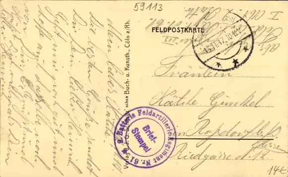 Zustand, siehe Scan, gelaufen, 1917 - ca 14 cm X 9 cm