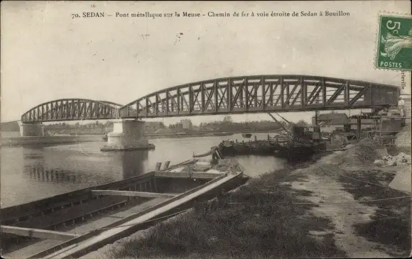 Ak Sedan Ardennen, Metallbrücke über die Maas, Schmalspurbahn von Sedan nach Bouillon