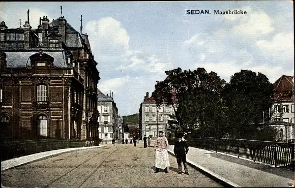 Ak Sedan Ardennes, Maasbrücke, Häuser