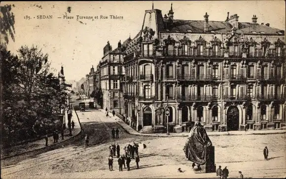 Ak Sedan Ardennes, Place Turenne et Rue Thiers