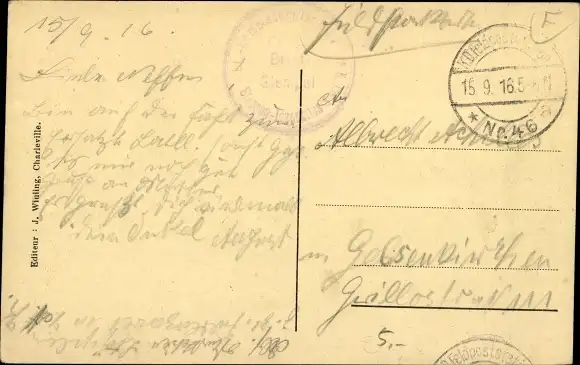 Zustand, siehe Scan, gelaufen, 1916 - ca 14 cm X 9 cm