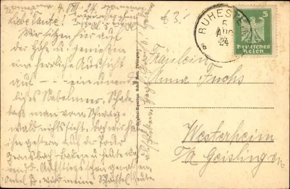 Zustand, siehe Scan, gelaufen, 1924 - ca 14 cm X 9 cm