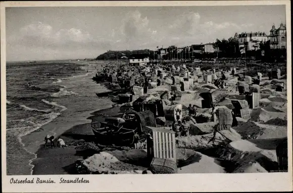 Ak Seebad Bansin, Blick auf das Strandleben, Wohnhäuser