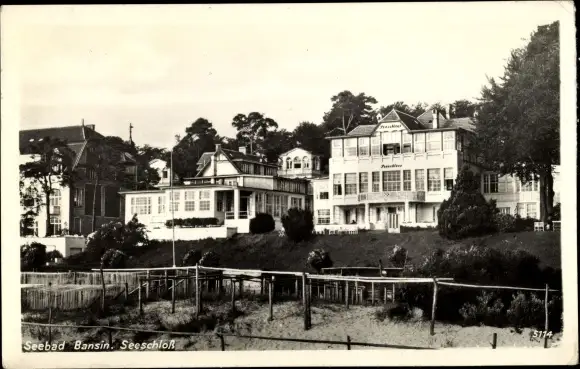 Ak Seebad Bansin, Hotel Seeschloß mit Strand