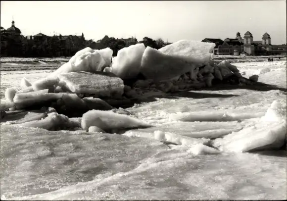 Ak Seebad Binz auf Rügen, Eisschollen am Strand