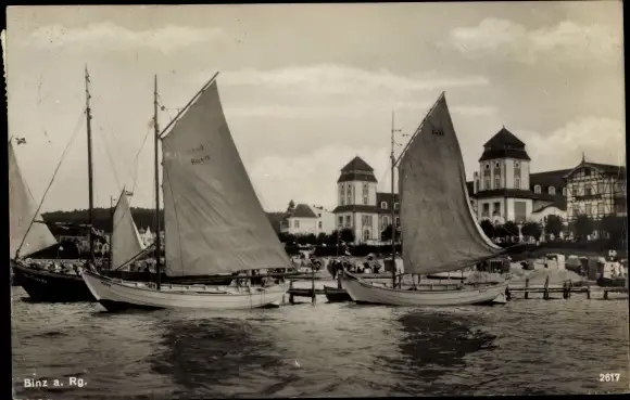 Ak Seebad Binz auf Rügen, Hafen, Segelboote