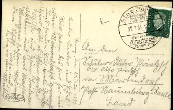 Zustand, siehe Scan, gelaufen, 1931 - ca 14 cm X 9 cm