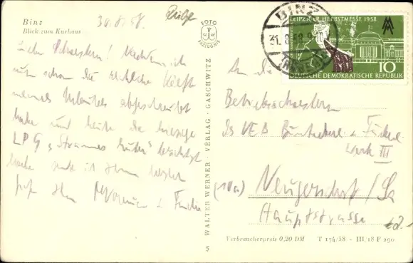 Zustand, siehe Scan, gelaufen, 1958 - ca 14 cm X 9 cm