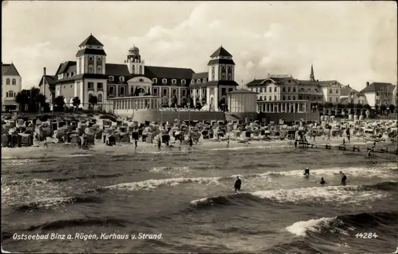 Ak Seebad Binz auf Rügen, Kurhaus, Strand