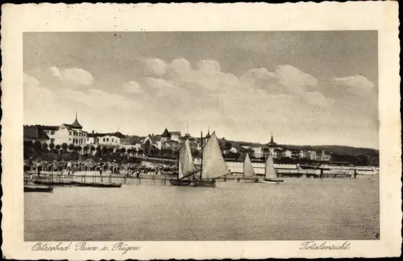 Ak Seebad Binz auf Rügen, Ortsansicht, Segelboote