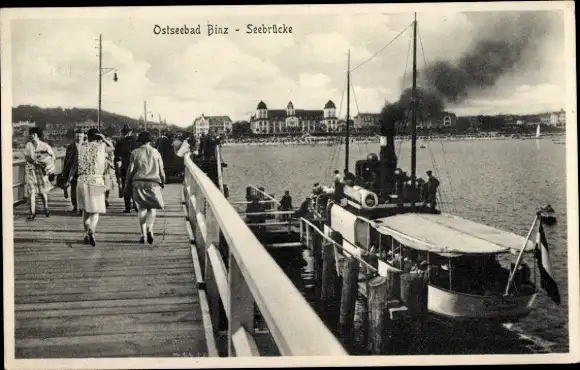 Ak Seebad Binz auf Rügen, Seebrücke, Dampfer