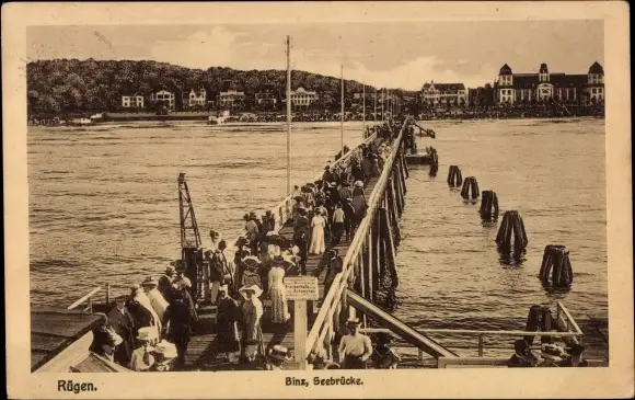 Ak Seebad Binz auf Rügen, Seebrücke, Passanten