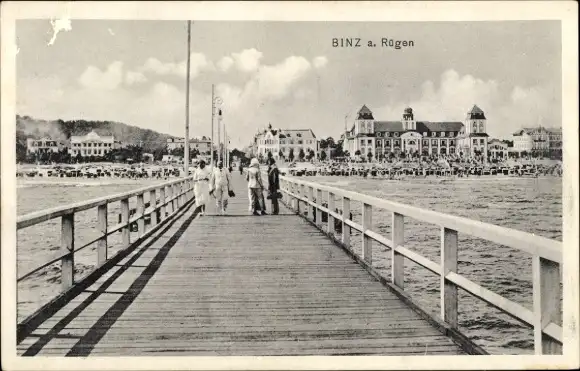 Ak Seebad Binz auf Rügen, Seebrücke, Strand