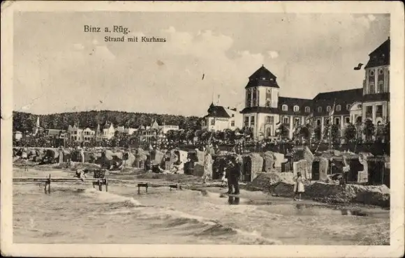 Ak Seebad Binz auf Rügen, Strand mit Kurhaus