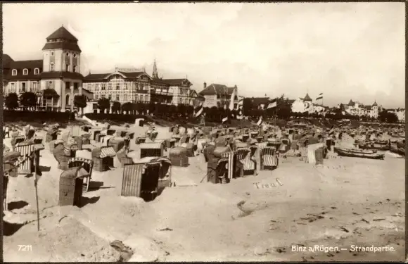 Ak Seebad Binz auf Rügen, Strandpartie
