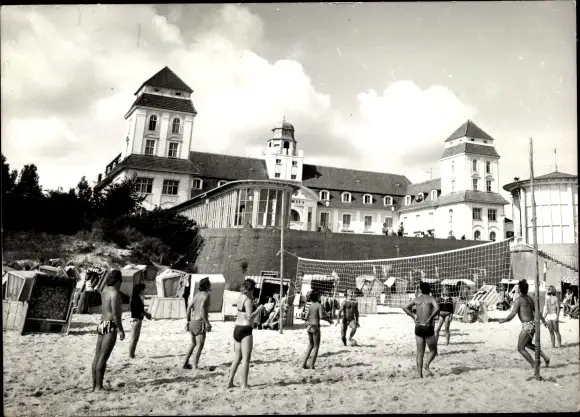 Ak Seebad Binz auf Rügen, Strandpartie, Volleyball, Kurhaus