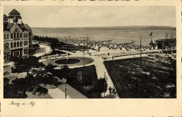 Ak Seebad Binz auf Rügen, Teilansicht, Promenade, Strand