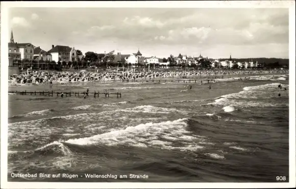 Ak Seebad Binz auf Rügen, Wellenschlag am Strande