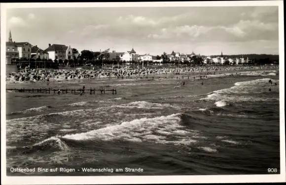 Ak Seebad Binz auf Rügen, Wellenschlag am Strande