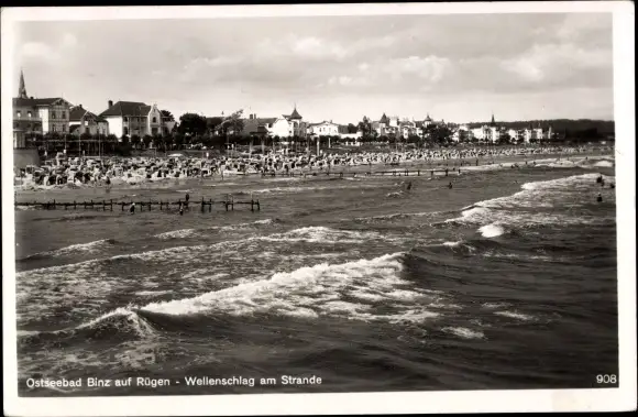 Ak Seebad Binz auf Rügen, Wellenschlag am Strande