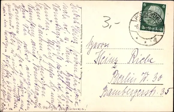 Zustand, siehe Scan, gelaufen, 1934 - ca 14 cm X 9 cm