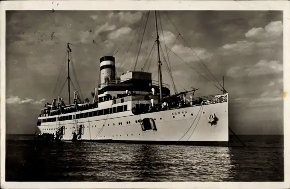 Ak Seebäderdampfer Cobra vor Helgoland, Vor Anker, Ausbooten, HAPAG