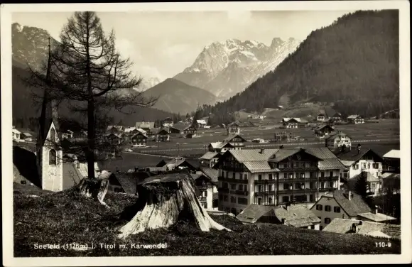 Ak Seefeld Tirol, Gesamtansicht, Karwendel