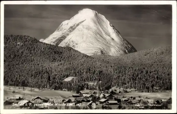 Ak Seefeld in Tirol, Blick gegen Hohe Munde, Ort